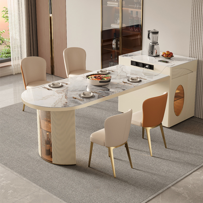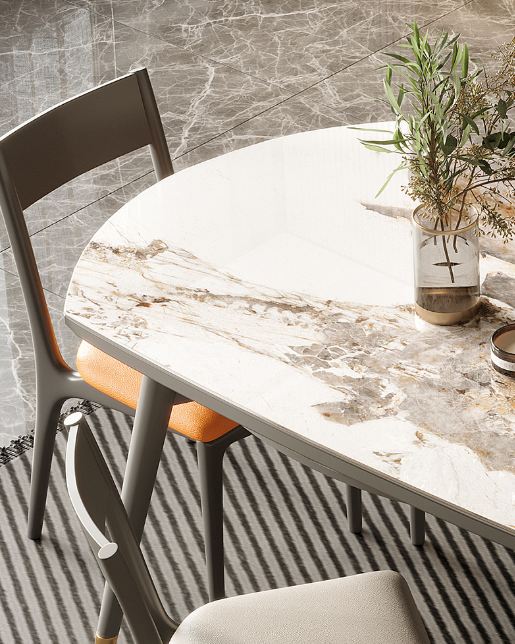 Bàn ăn oval: Sự kết hợp giữa tính sang trọng và khả năng tiết kiệm diện tích tương đương bàn chữ nhật nhưng không có góc nhọn nguy hiểm.