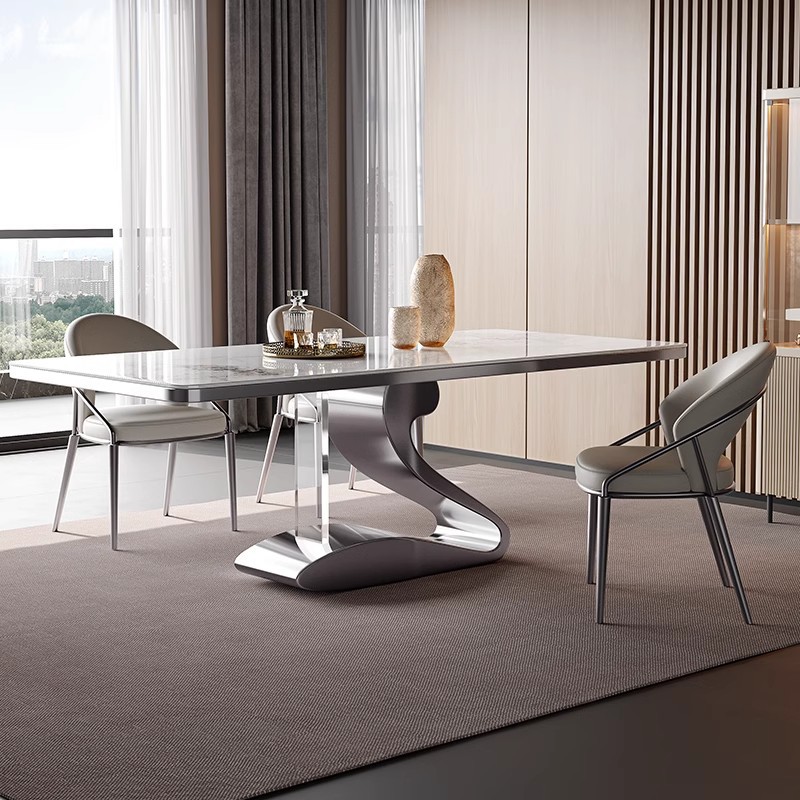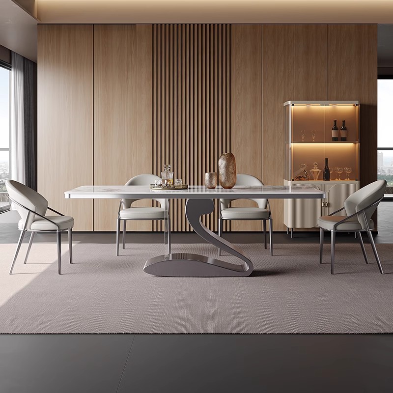 Bộ bàn ăn toát lên phong thái hiện đại nhưng đầy tinh tế. Những đường cong mềm mại hòa cùng bố cục chắc chắn mang lại cảm giác cân bằng, phù hợp với nhiều không gian – từ căn hộ hiện đại đến biệt thự cao cấp. Đây không chỉ là món đồ nội thất, mà còn là điểm nhấn nghệ thuật giúp nâng tầm giá trị sống của gia chủ.