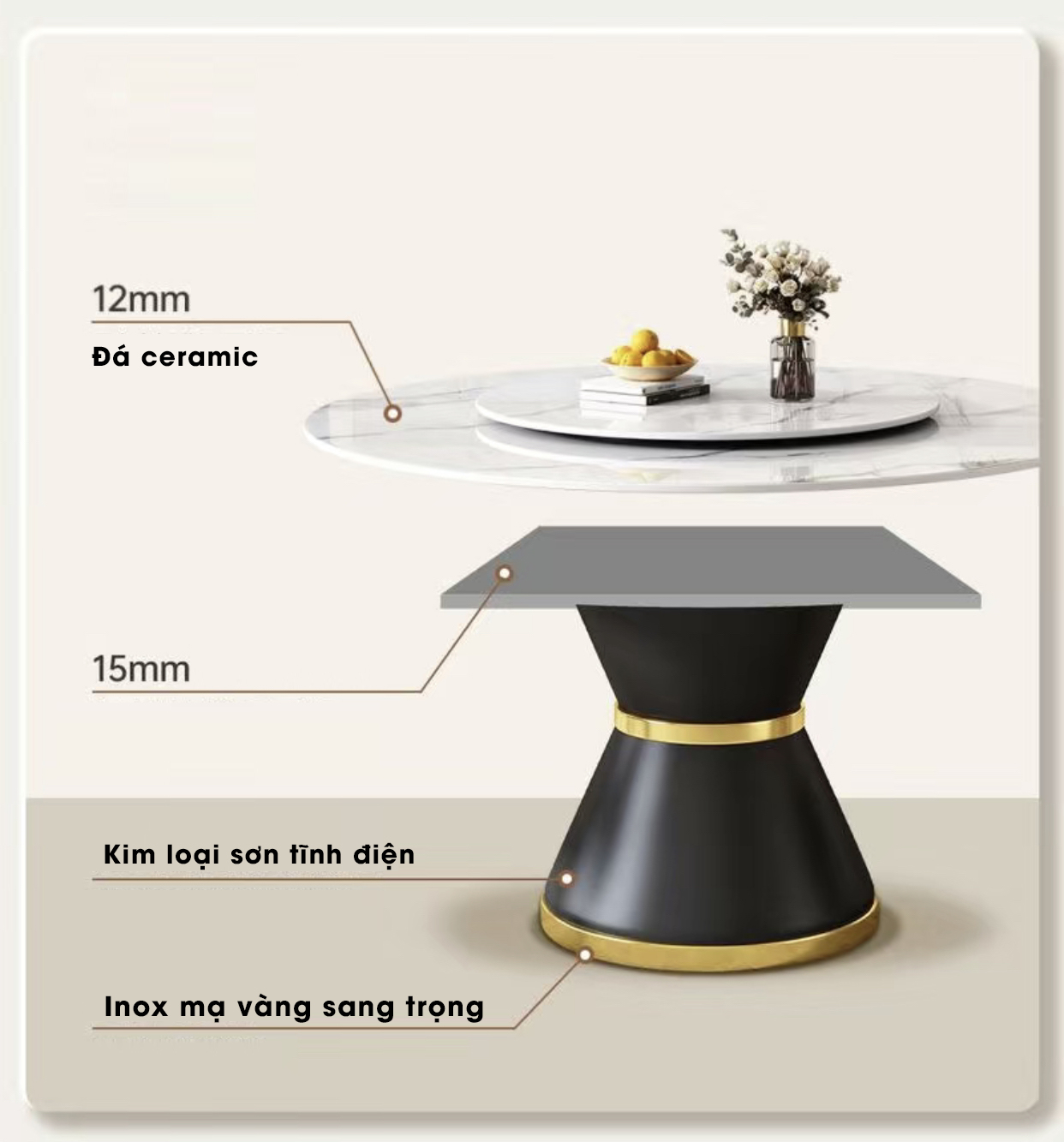Bộ Bàn Ăn Tròn Mặt Đá Có Mâm Xoay ERICA – DP03 chính là minh chứng rõ nét nhất. Sau đây, hãy cùng chúng tôi tìm hiểu chi tiết nhé!!!