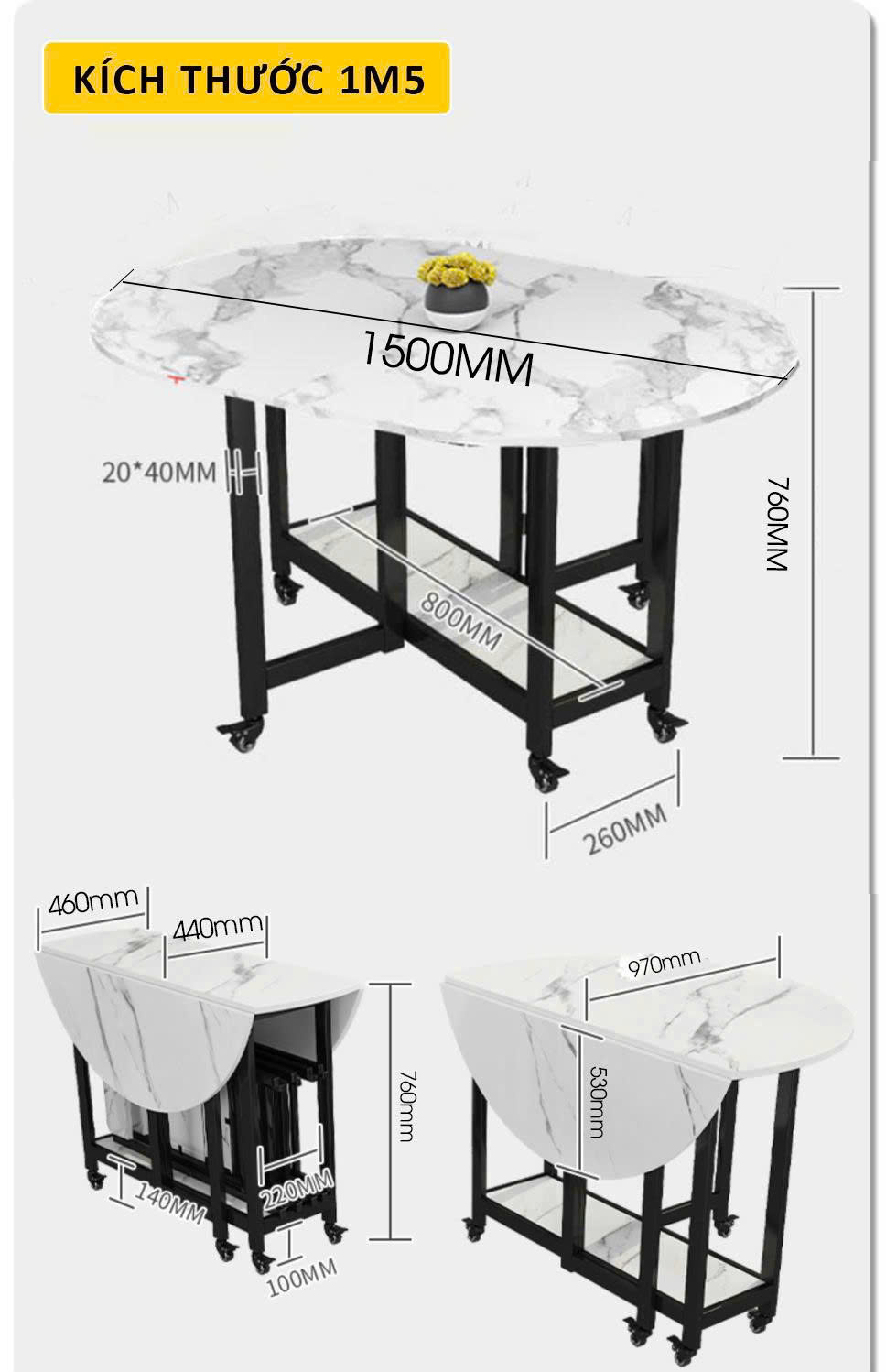 Với khả năng gập mở linh hoạt & hệ thống bánh xe hỗ trợ, bộ bàn mang lại tính di động cực cao. Người sử dụng có thể dễ dàng di chuyển bàn từ địa điểm này tới địa điểm khác mà không gặp vấn đề gì. Rất hữu ích khi cần di chuyển bàn từ phòng này sang phòng khác cũng như cực tiện mỗi khi muốn vệ sinh và lau chùi nhà cửa.