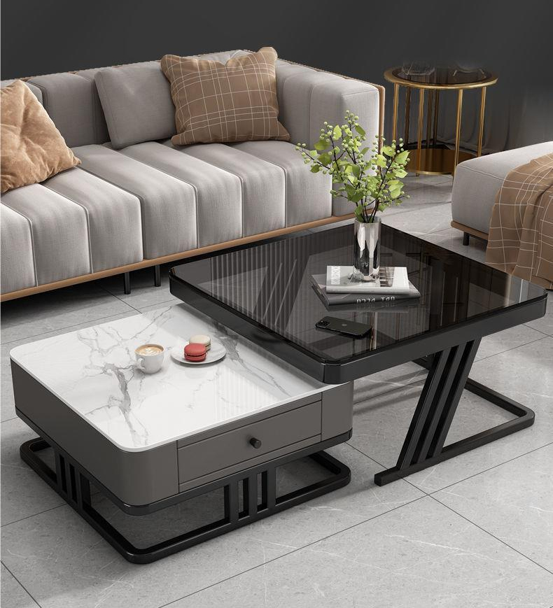 Bộ bàn trà kết hợp đôi có thể tách rời, di chuyển linh hoạt theo nhu cầu: tiếp khách, uống trà, trang trí hoặc đặt đồ dùng.