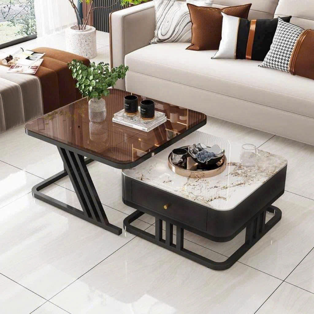 Từ mặt đá nhân tạo sang trọng, gỗ công nghiệp phủ veneer, gỗ sồi tự nhiên đến kính cường lực hiện đại… các mẫu bàn trà hai bàn kết hợp luôn có đủ phiên bản theo nhiều phong cách: Bắc Âu, Tối Giản, Wabi Sabi, Luxury,...