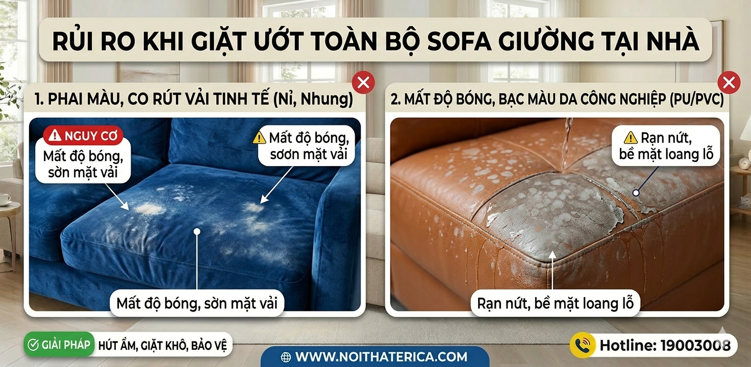 Các dòng vải bọc tinh tế hoặc da công nghiệp có thể bị mất độ bóng, bạc màu hoặc co rút nếu tiếp xúc với hóa chất tẩy rửa mạnh và nước quá lâu. Đặc biệt, với những thiết kế hướng đến sự sang trọng, việc giữ gìn bề mặt là ưu tiên hàng đầu.