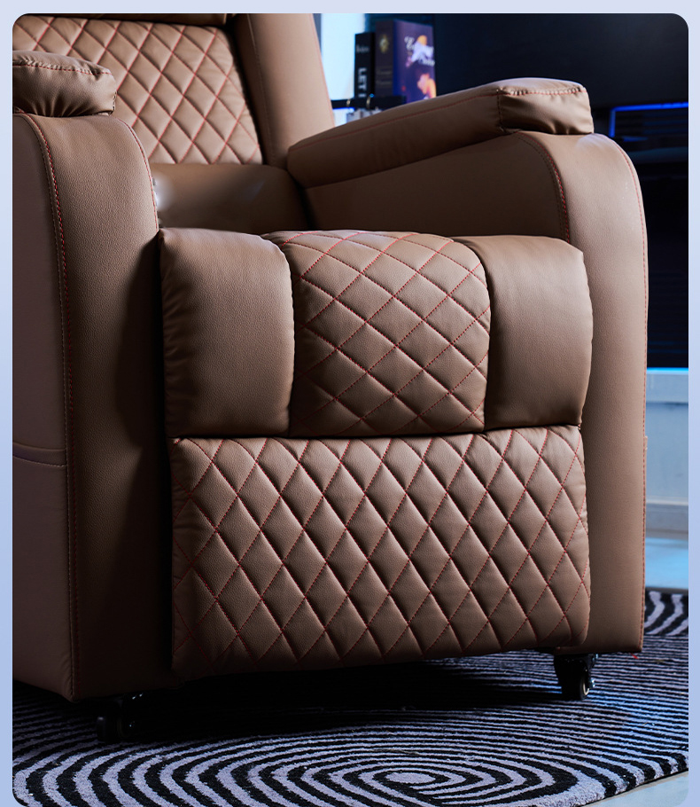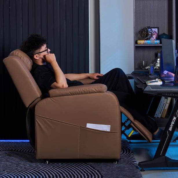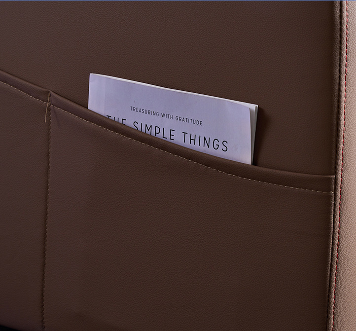 Bên hông ghế được thiết kế túi đựng tiện lợi, phù hợp để cất sách, tạp chí, hoặc điều khiển TV. Thiết kế này không chỉ mang lại sự gọn gàng mà còn thể hiện sự tinh tế trong từng chi tiết nhỏ, đáp ứng trọn vẹn nhu cầu của người dùng hiện đại.