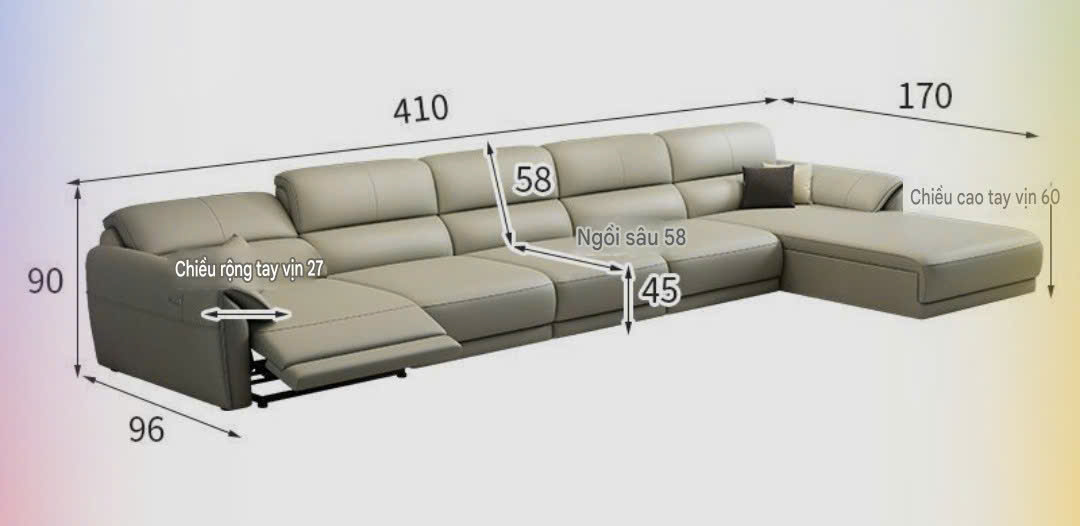 Sofa chỉnh điện chữ L size 4m1 GIÁ 55.990.000Đ