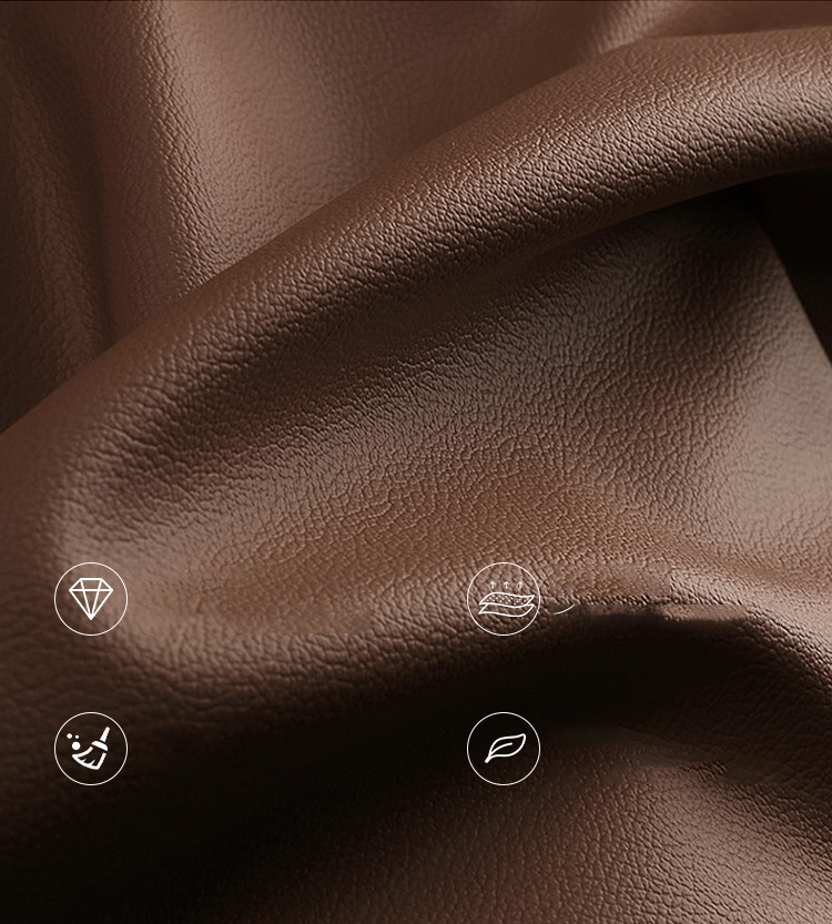 - Bề mặt bọc da tổng hợp cao cấp mềm mượt, bền màu và dễ vệ sinh, mang lại cảm giác sang trọng khi chạm tay.