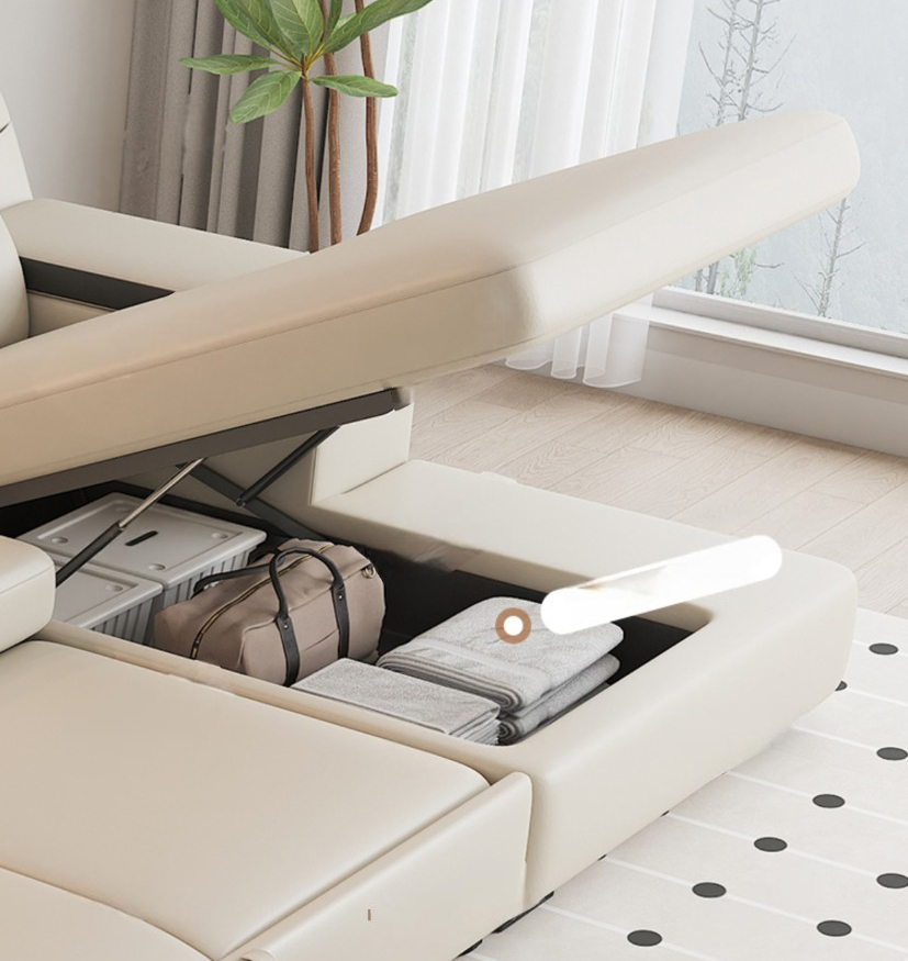 Sofa đa năng được tích hợp hệ thống ngăn lưu trữ thông minh bên dưới phần đệm ngồi, giúp bạn dễ dàng sắp xếp và cất giữ chăn, gối hoặc các vật dụng nhỏ gọn khác, giữ cho căn phòng luôn ngăn nắp.