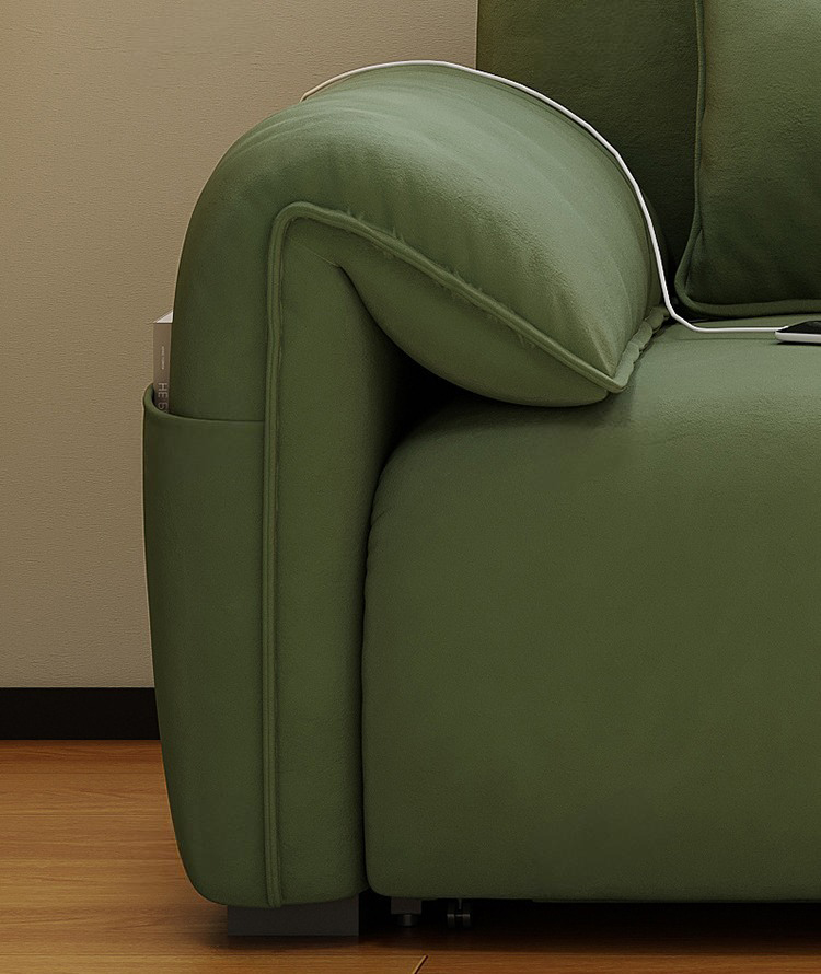 tiết kiệm tối đa không gian sống. Bên cạnh đó, cổng sạc USB tích hợp tại tay ghế cho phép sạc điện thoại hoặc thiết bị di động ngay khi bạn đang thư giãn.