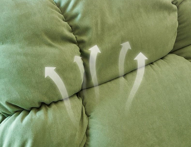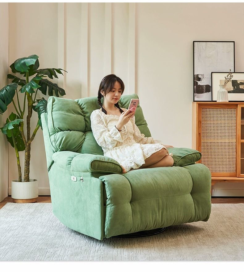 Ghế nằm thư giãn sử dụng lớp vải nhung mềm mại kết hợp cùng đệm bọt biển đàn hồi và bông búp bê – tạo nên hiệu ứng êm ái, lún nhẹ nhưng vẫn nâng đỡ chắc chắn. Nhờ cấu trúc đệm nhiều tầng, người ngồi luôn cảm nhận được sự thư giãn đồng đều từ vai, lưng đến hông.