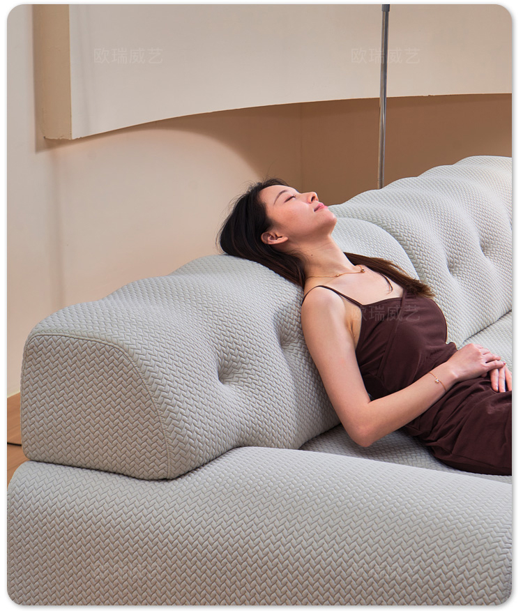 Phần tựa lưng cong nhẹ theo hình cột sống giúp giảm áp lực cho cổ, vai và thắt lưng. Đệm ngồi sâu 68 cm cho phép bạn ngồi xếp bằng, co chân hoặc ngả người mà vẫn thoải mái tự nhiên.
