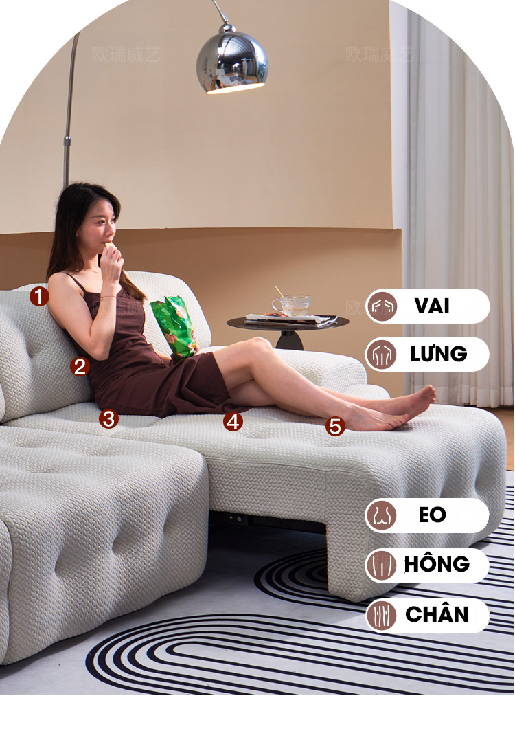 Sofa được thiết kế dựa trên nguyên lý công thái học (ergonomics) – đảm bảo sự thoải mái và đúng tư thế cho người sử dụng.