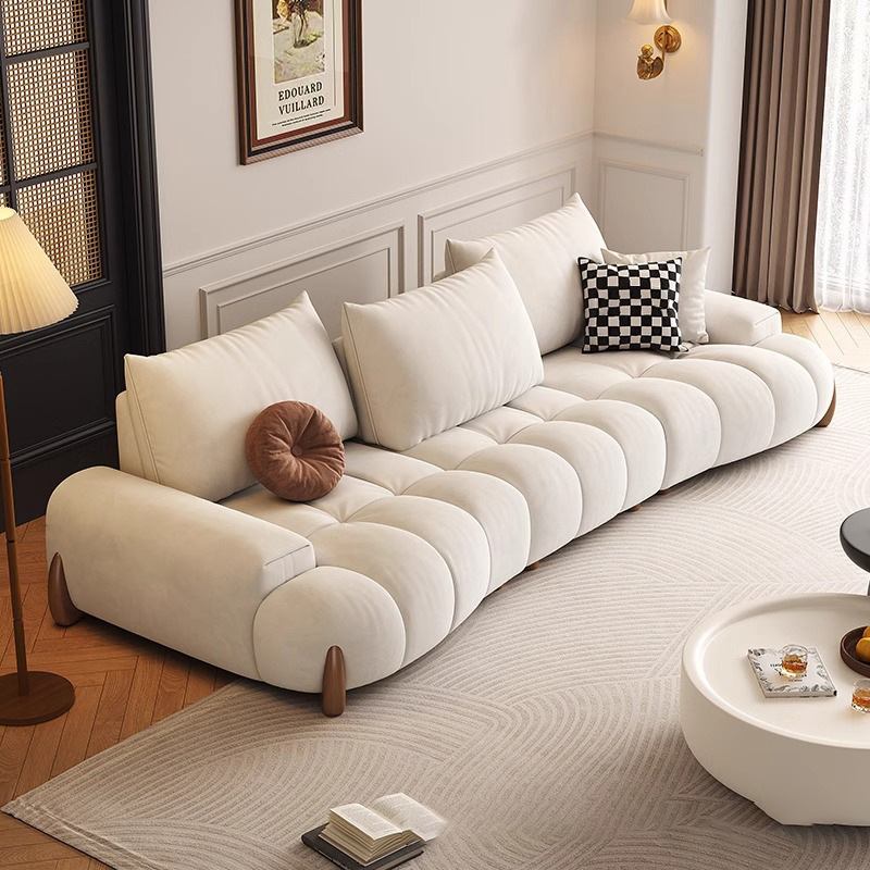 Ẩn bên trong là khung gỗ tự nhiên được xử lý kỹ lưỡng, có khả năng chịu lực tốt và duy trì độ bền lâu dài. Nhờ vậy, sofa không chỉ giữ được form dáng đẹp mắt mà còn đảm bảo sự an toàn khi sử dụng
