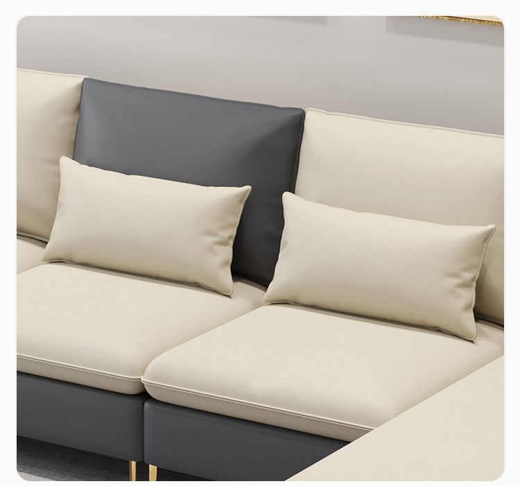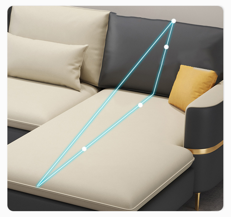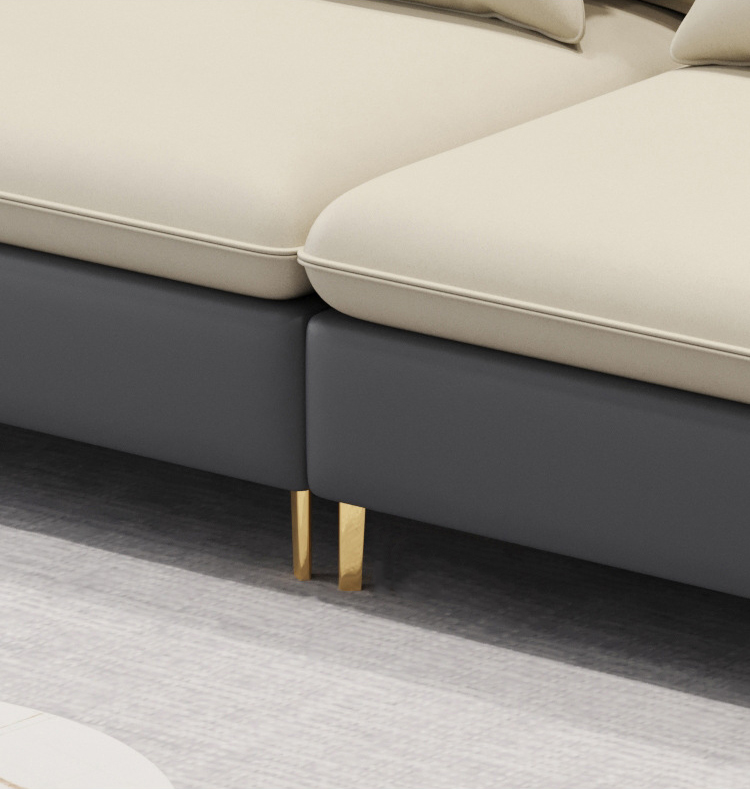 ERICA – NS05 là sự phối hợp tinh tế giữa hai gam màu đối lập, mang lại hiệu ứng thị giác độc đáo và cuốn hút. Các đường chạy ngang sofa được mạ vàng tỉ mỉ, tạo nên dấu ấn sang trọng và góp phần nâng tầm giá trị thẩm mỹ cho không gian sống.