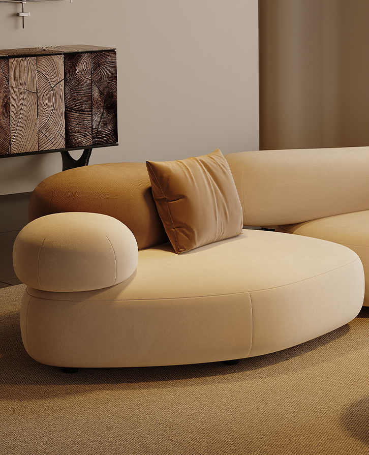 Sofa sở hữu thiết kế khá độc đáo, mô phỏng chân thực những viên sỏi với hình dáng & kích thước khác nhau được xếp chồng tự nhiên. Tất cả nhằm mang lại sự phóng khoáng, mềm mại và tràn đầy cảm hứng cho không gian bày trí.