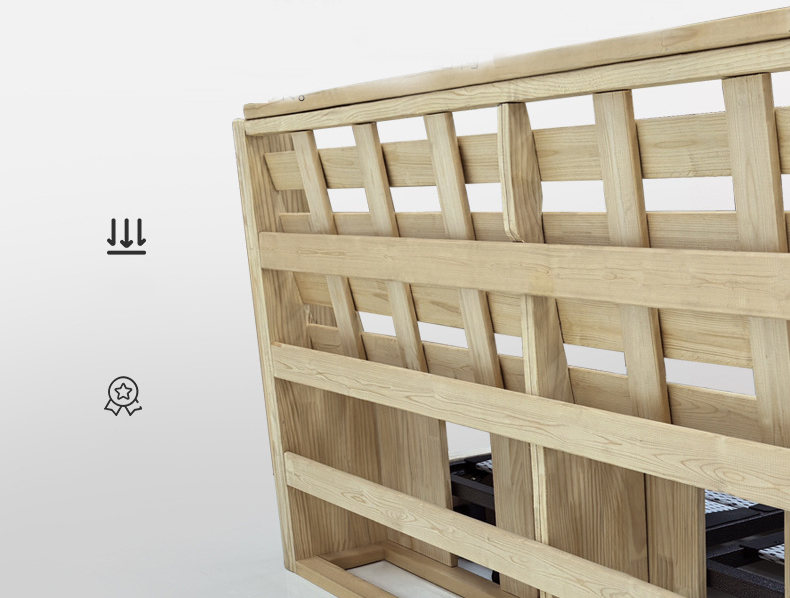 Khung giường được làm từ gỗ thông bền vững, mang lại khả năng chịu lực vượt trội. Sự vững chãi trong cấu trúc kết hợp cùng sự mềm mại của lớp da bọc, tạo nên một chiếc giường vừa tiện nghi vừa sang trọng.