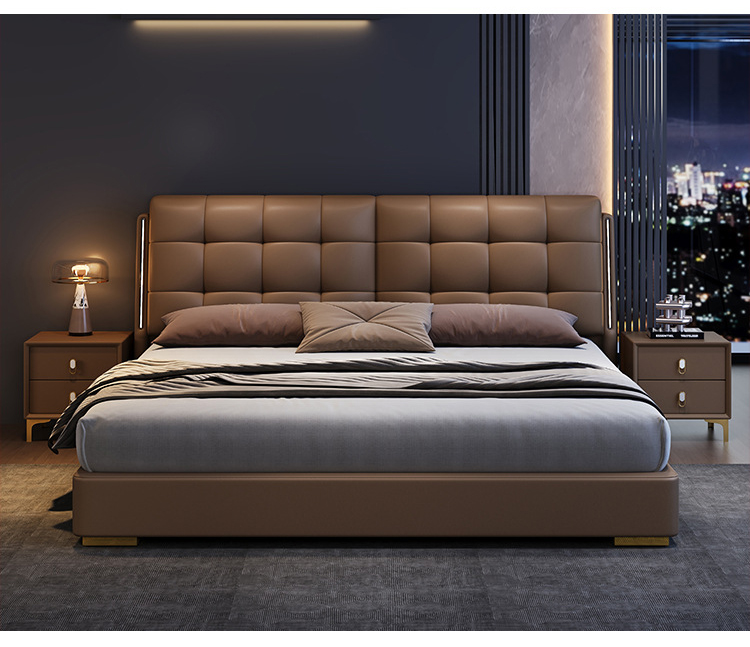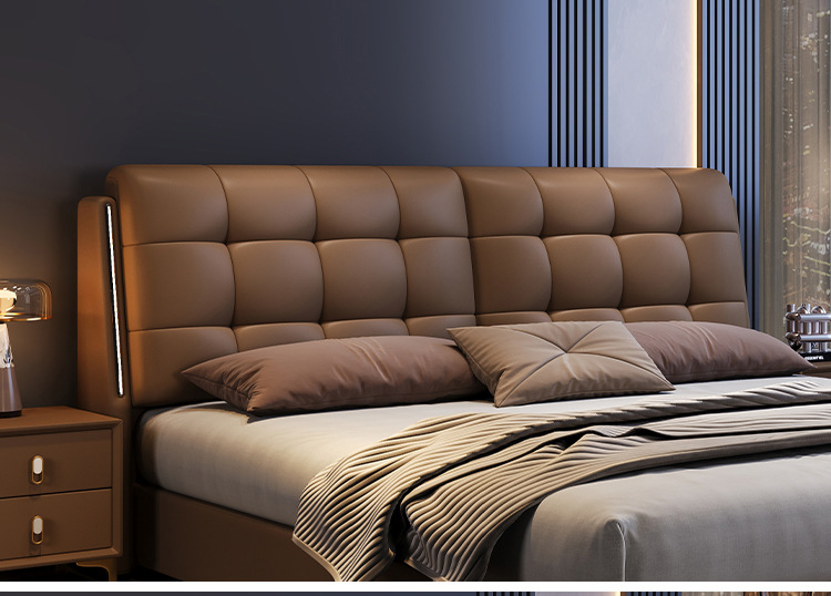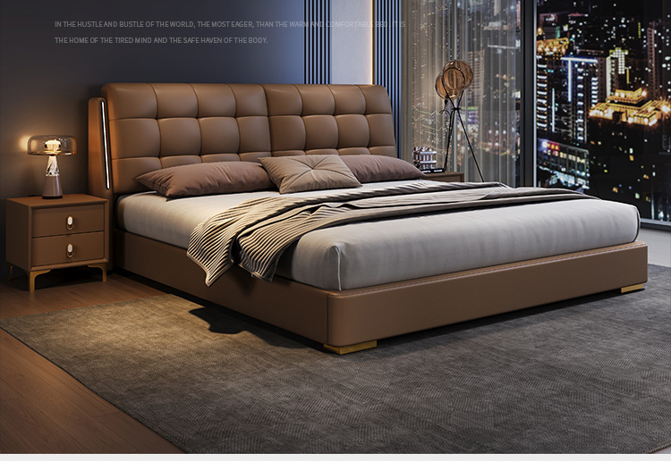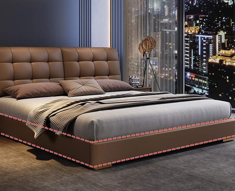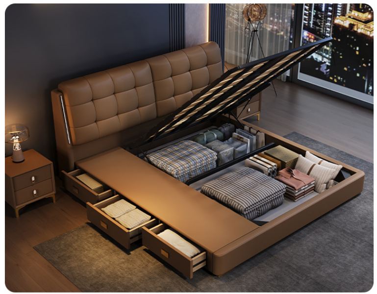 nội thất đa năng này sử dụng lớp bọc da bò tự nhiên, mềm mại, thoáng khí và bền bỉ theo thời gian. Bề mặt da có khả năng chống bám bụi, dễ vệ sinh, đồng thời kết hợp cùng phần tựa đầu dày dặn, mang đến cảm giác êm ái và thoải mái trong từng phút giây nghỉ ngơi.