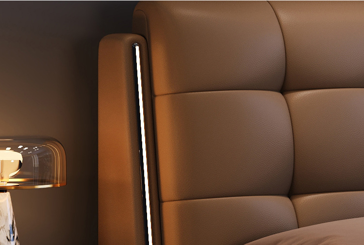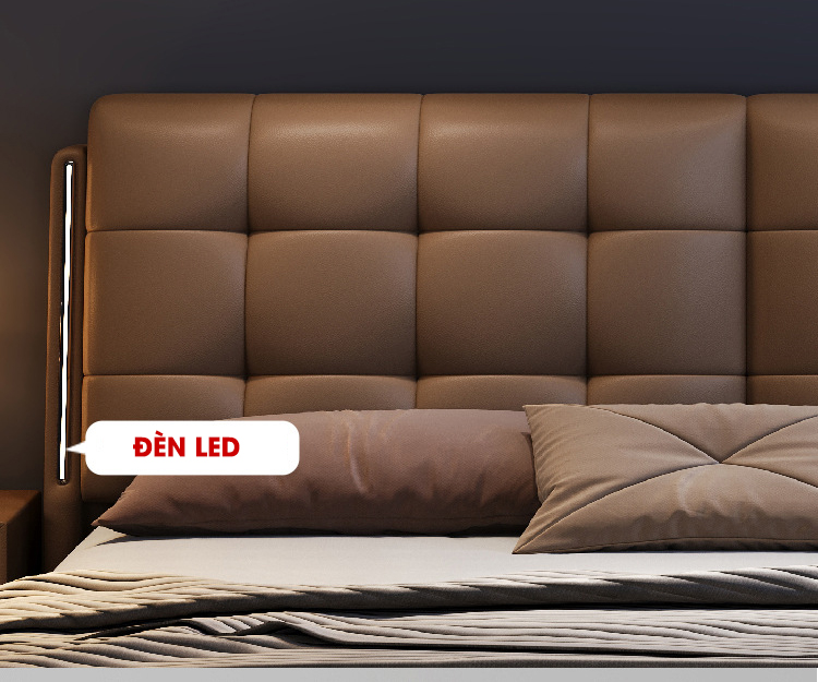 Sản phẩm có trang bị thêm dải đèn cảm ứng ngay phần đầu giường. Thứ ánh sáng dịu nhẹ này sẽ tự động bật khi phát hiện chuyển động. Tính năng này không chỉ giúp di chuyển ban đêm thuận tiện mà còn làm nổi bật vẻ hiện đại của nội thất phòng ngủ.