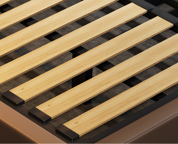 Khung giường chế tác từ gỗ nguyên khối kết hợp thép cao cấp, tạo nên sự vững chãi, khả năng chịu lực tốt và hạn chế tối đa rung lắc hay tiếng ồn trong quá trình sử dụng. Đây là lựa chọn lý tưởng cho giấc ngủ sâu và yên tĩnh.