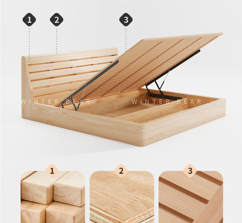 Khung giường sử dụng gỗ thông tự nhiên, chắc khỏe và ổn định, mang lại khả năng chịu lực cao. Với cấu trúc vững chãi, sản phẩm đảm bảo sự an toàn và giấc ngủ ngon trọn vẹn cho người sử dụng.
