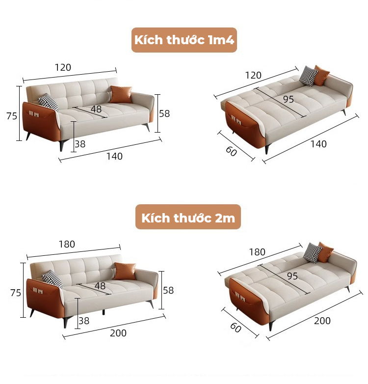 - Giường ngủ: Mở rộng hoàn toàn để tạo thành chiếc giường êm ái, mang đến giấc ngủ trọn vẹn.