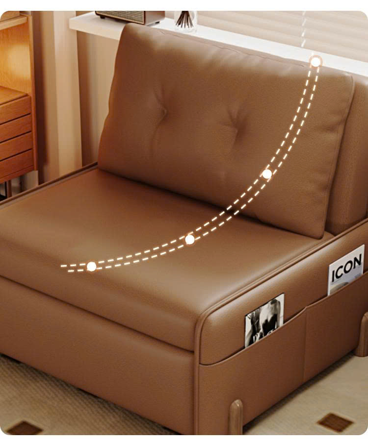 Sofa giường ERICA – SB01 sở hữu thiết kế tối giản mang hơi thở hiện đại, phù hợp với nhiều phong cách nội thất từ cổ điển cho đến hiện đại. Các đường bo góc mềm mại, tựa lưng êm ái cùng tone màu nâu da bò thanh lịch mang lại cảm giác ấm áp, gần gũi ngay từ cái nhìn đầu tiên.