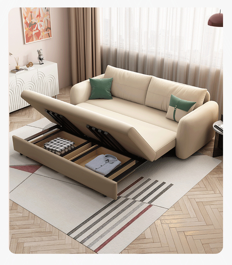 Bên dưới phần ghế được thiết kế một khoang chứa đồ ẩn thông minh, giúp bạn dễ dàng cất giữ các vật dụng như chăn, gối hoặc đồ dùng cá nhân. Cấu trúc khung kim loại kết hợp gỗ tự nhiên giúp sofa vận hành trơn tru, chắc chắn và an toàn trong mọi thao tác.