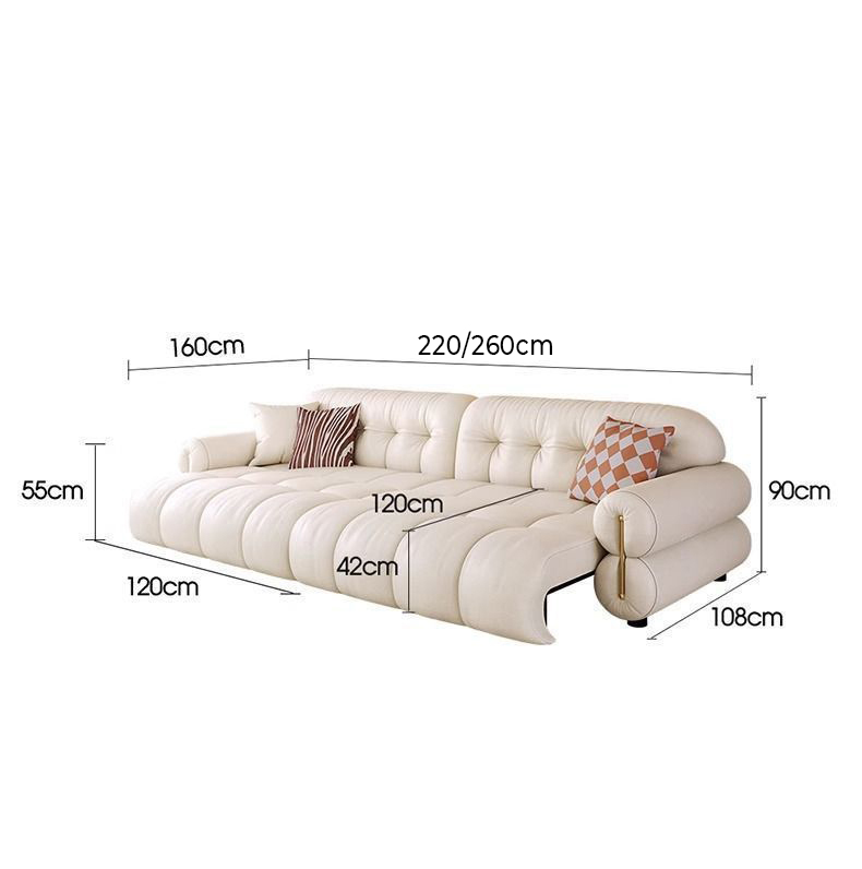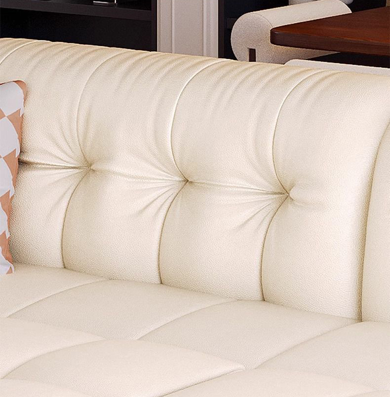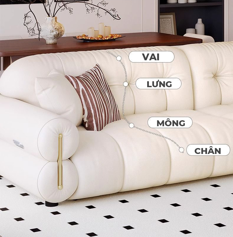 Toàn bộ được bọc bằng da nhập khẩu cao cấp, mềm mại, sang trọng và dễ vệ sinh. Bề mặt da có khả năng chống bám bụi, chống xước và kháng ẩm hiệu quả,