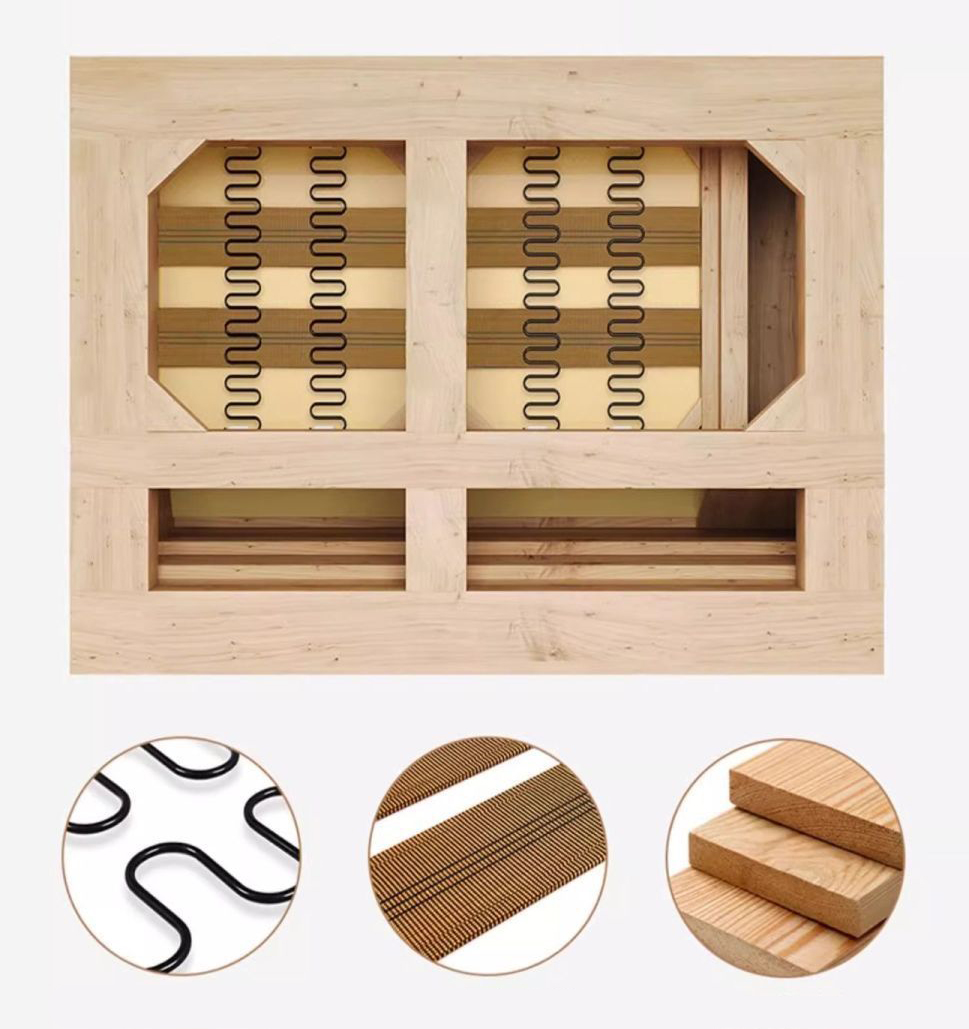 Bên trong là hệ thống lò xo chữ S đàn hồi cao kết hợp với băng thun co giãn – mang lại khả năng chịu lực tốt, đàn hồi vượt trội