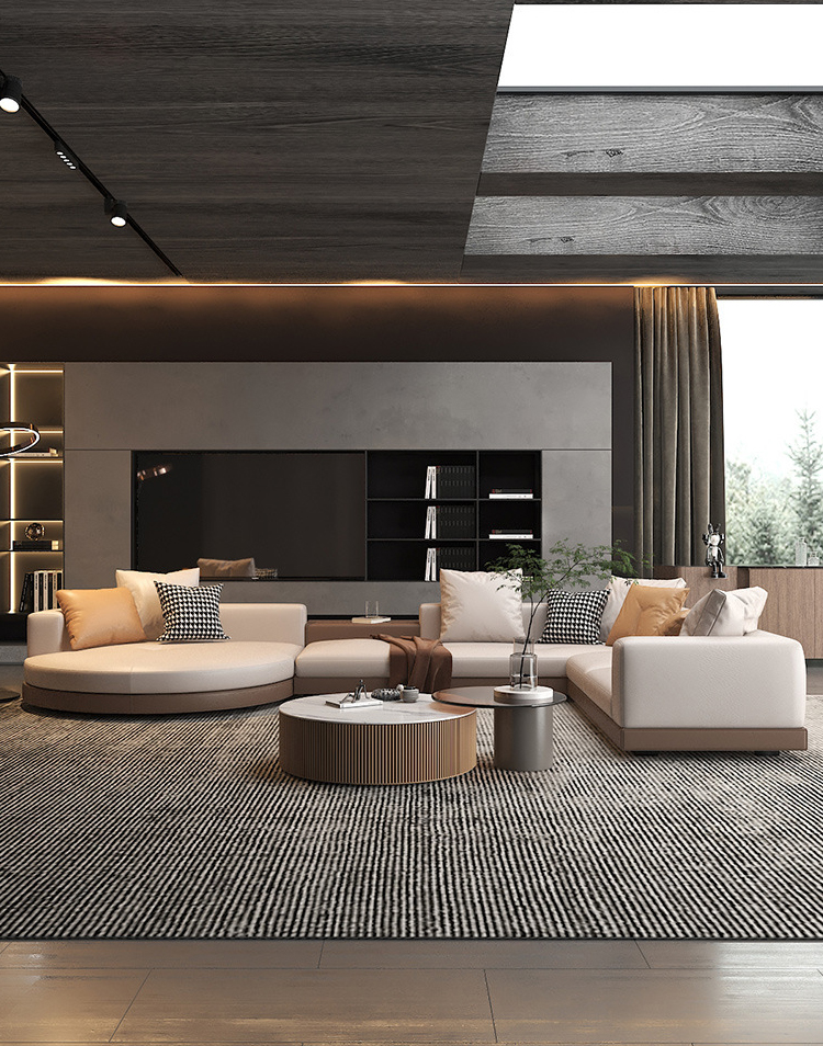 Được tạo nên từ 5 khối ghế liên kết với nhau, ERICA – NS35 tạo thành bố cục hình chữ U độc đáo. Mỗi khối ghế có kích thước riêng biệt về chiều dài nhưng lại đồng bộ về chiều sâu và độ cao, giúp tổng thể trở nên cân đối, bề thế. Với lợi thế này, sofa phù hợp nhất cho không gian phòng khách rộng lớn như biệt thự, liền kề hay căn hộ penthouse, mang đến sự hoành tráng và tiện nghi.