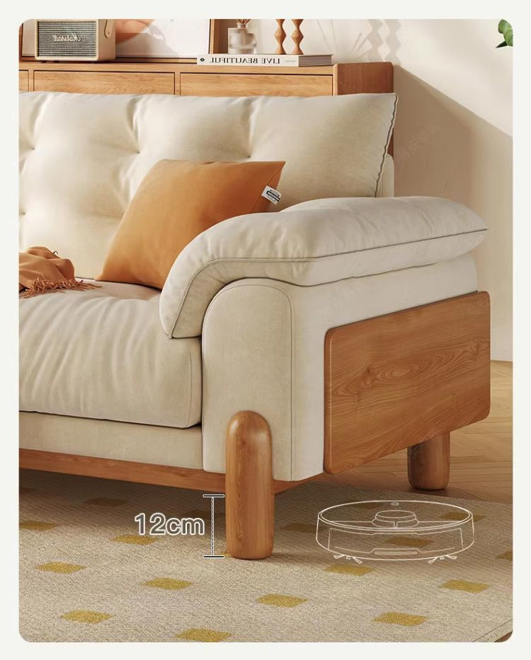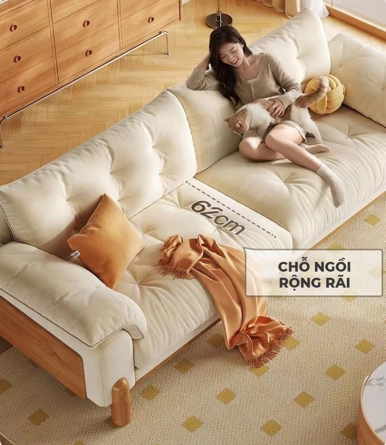 Khung sofa được làm từ gỗ tự nhiên nguyên khối, chọn lọc kỹ lưỡng để đạt được độ chắc chắn và ổn định cao. Các bề mặt gỗ được xử lý chống ẩm, chống mối mọt, đồng thời giữ nguyên vân gỗ tự nhiên tạo điểm nhấn mộc mạc mà tinh tế. Đây chính là phần nền tảng vững bền giúp sofa luôn bền đẹp và giữ dáng qua năm tháng.