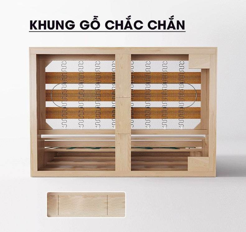 Khung sofa làm từ gỗ thông Nga, được xử lý sấy khô kỹ lưỡng với độ ẩm tiêu chuẩn 8–12%, đảm bảo độ cứng chắc và hạn chế tối đa tình trạng cong vênh hay nứt gãy.