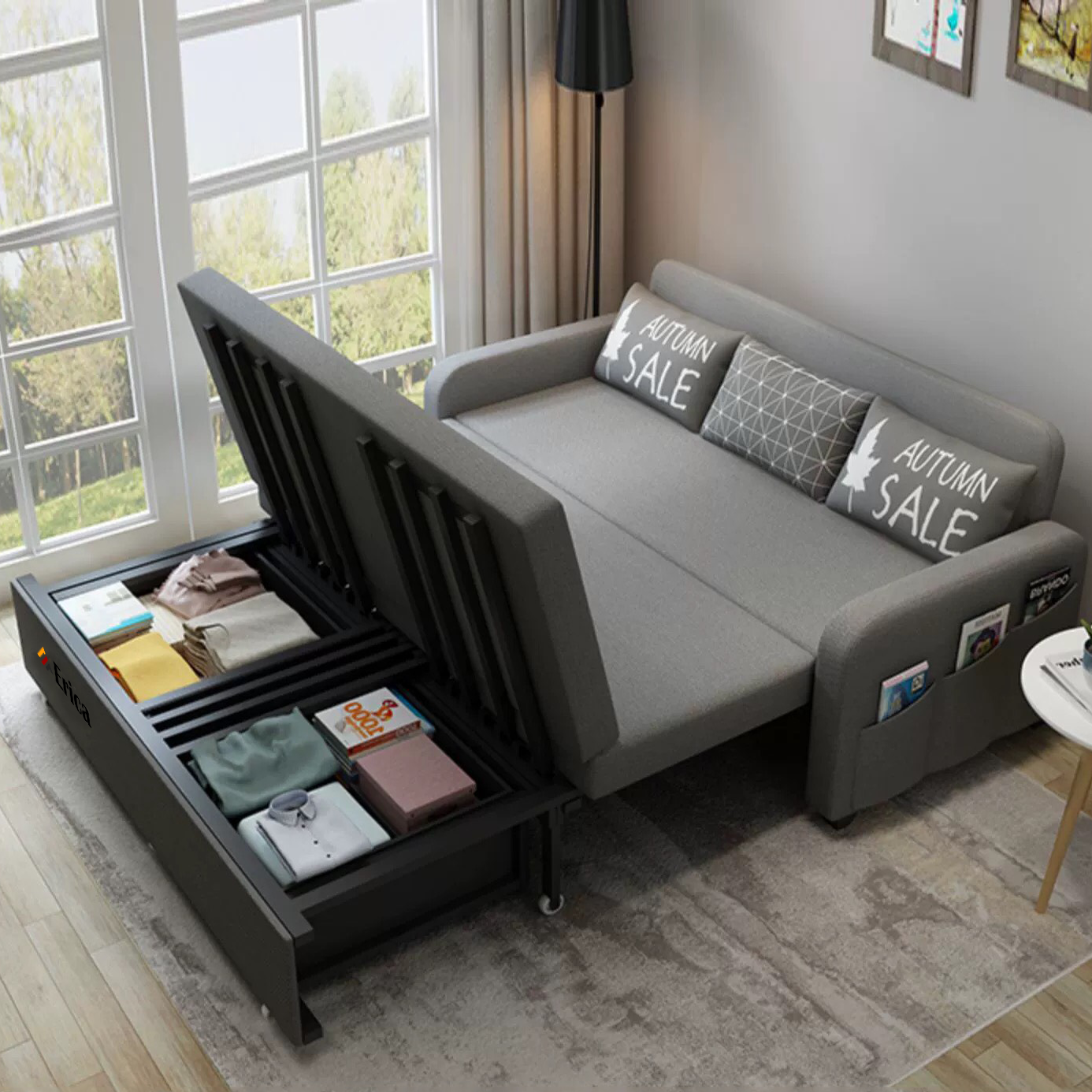 Một số mẫu sofa Erica còn có khả năng thay đổi hình dáng linh hoạt, dễ dàng chuyển đổi từ sofa thành giường ngủ hoặc bàn làm việc, giúp tận dụng tối đa diện tích, đặc biệt phù hợp với các căn hộ studio hoặc chung cư có diện tích hạn chế.