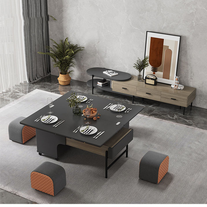 Bộ bàn ăn gỗ thông minh phong cách Bắc Âu này cho phép chuyển đổi công năng một cách linh hoạt chỉ bằng những thao tác đơn giản: bàn trà, bàn café, bàn làm việc, bàn ăn. Bàn cũng trang bị hệ thống kho lưu trữ cực đa dạng, cho bạn tha hồ cất trữ. Bộ bàn được làm từ gỗ MDF chuyên dụng, sử dụng công nghệ sơn piano hiện đại, mặt bàn kính cường lực chống nứt vỡ, khung nâng thủy lực, ray trượt giảm chấn tĩnh âm. Tất cả tạo nên một bộ bàn hoàn chỉnh có chất lượng hoàn hảo, tiện ích đẳng cấp.
