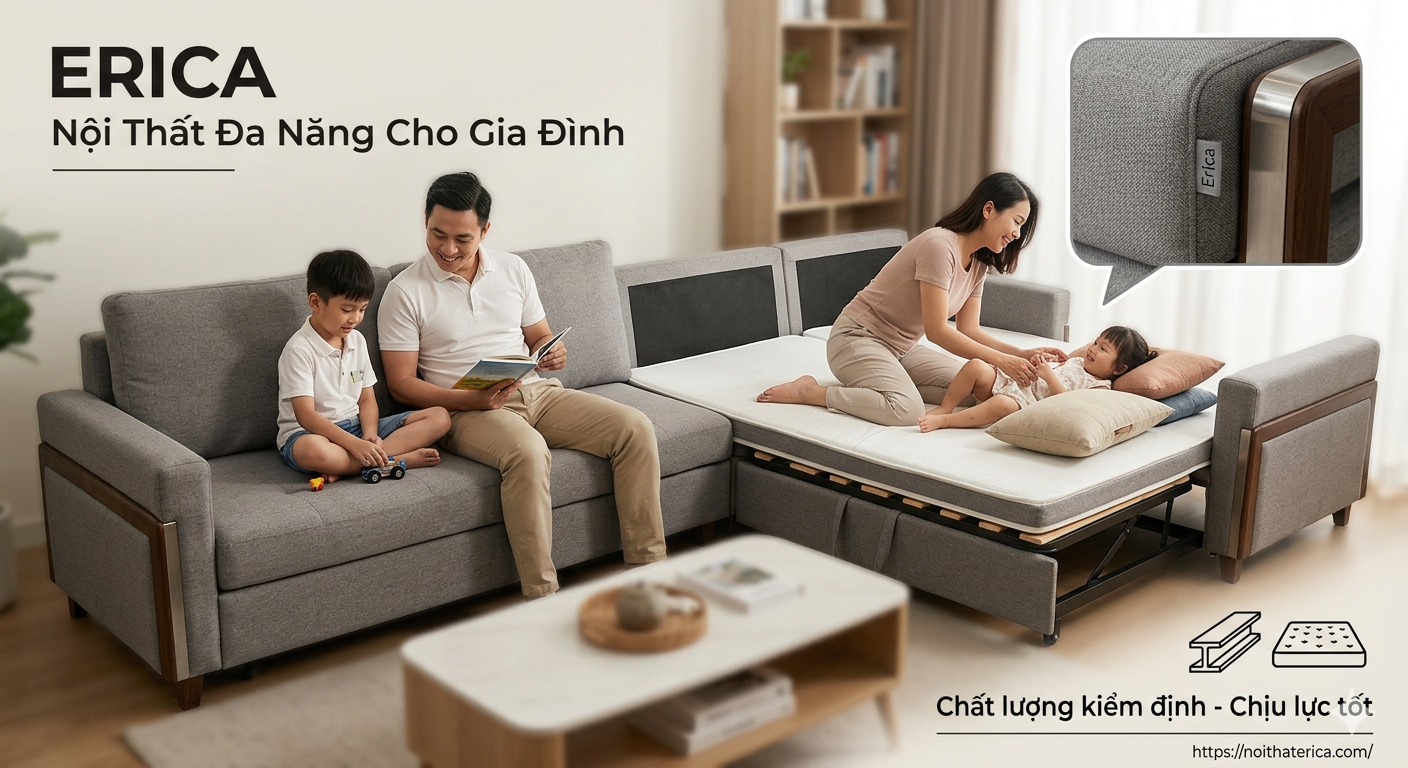 Nếu bạn đang tìm kiếm một chiếc giường ngủ sofa vừa thẩm mỹ, vừa có kết cấu khung sườn chắc chắn để an tâm sử dụng cho gia đình có trẻ nhỏ, hãy tham khảo các bộ sưu tập tại Erica.